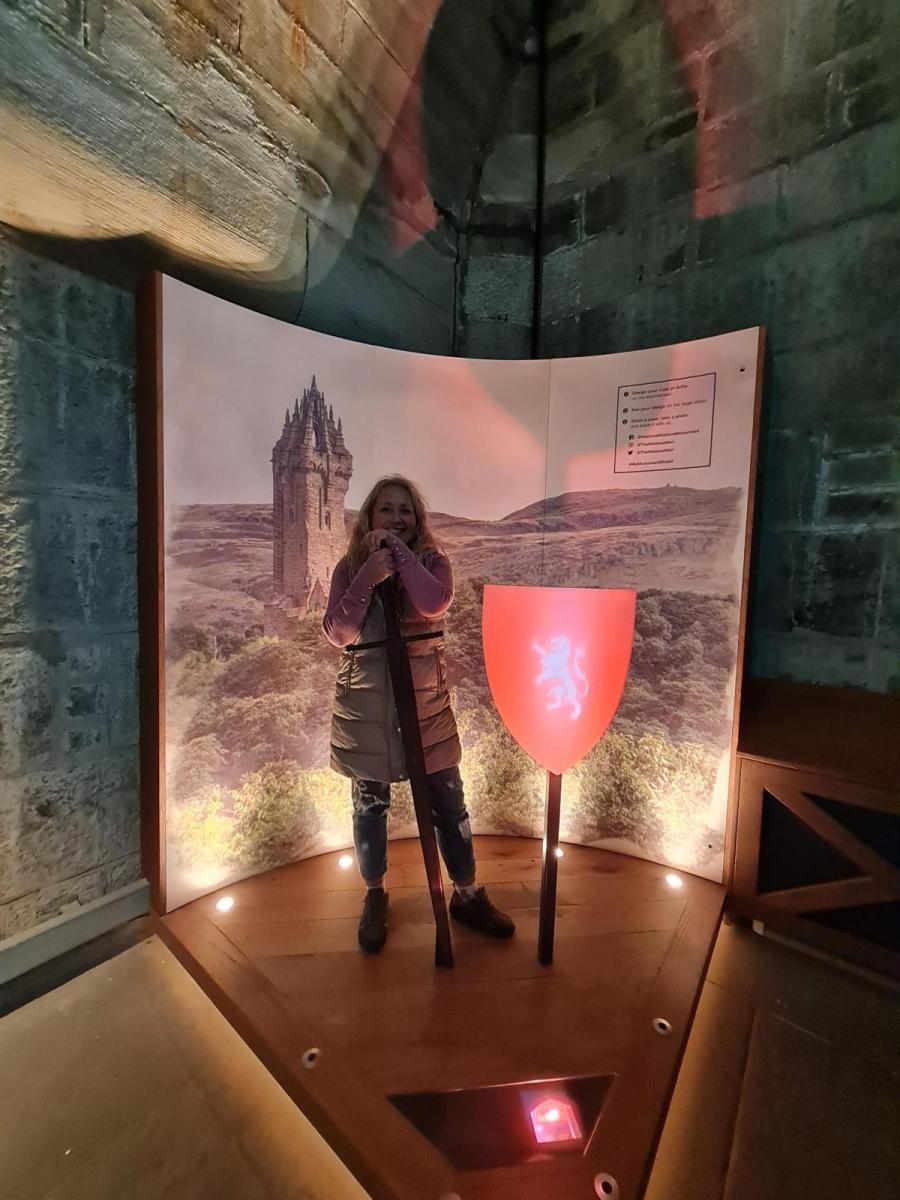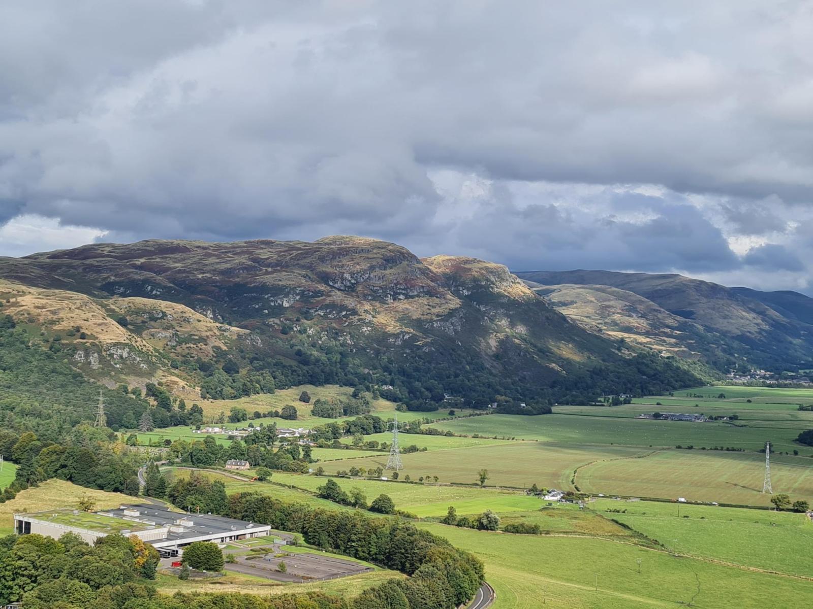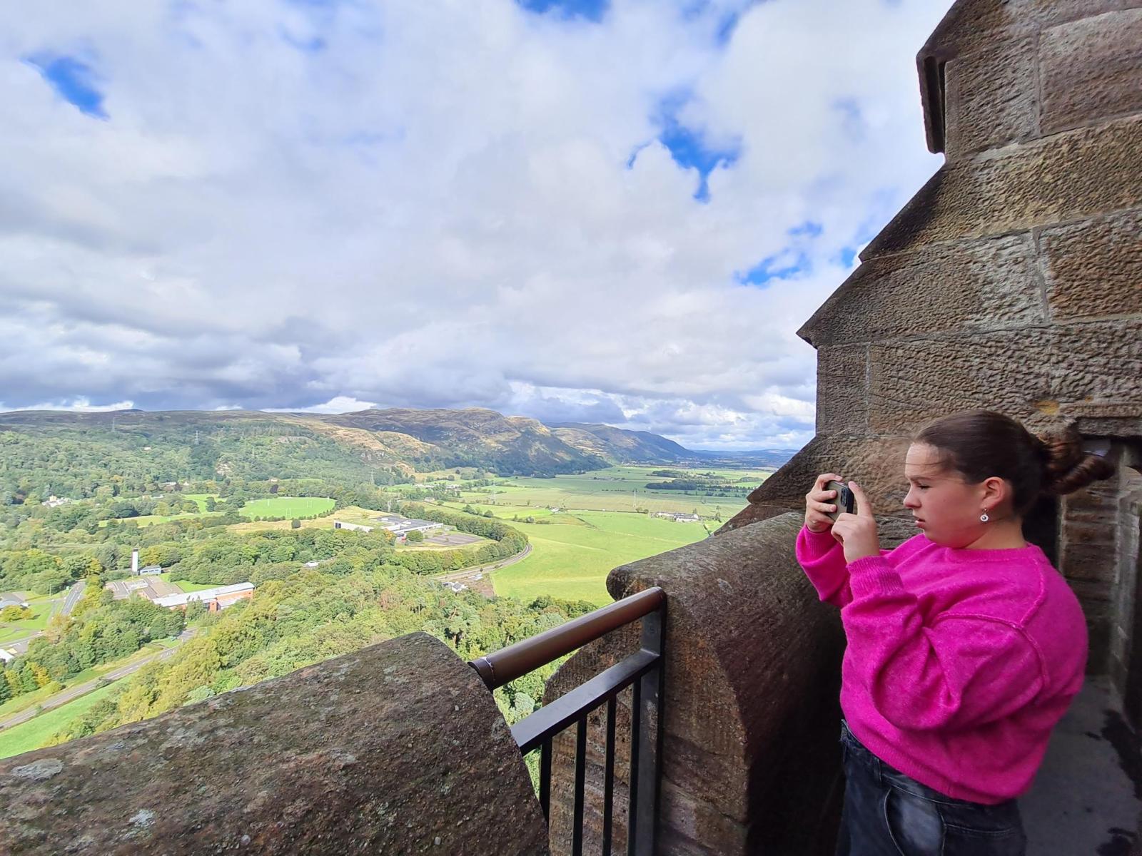 Poté jsme zamířili na Wallace Monument, odlud byl nádherný výhled na okolní zelené kopce, vinoucí se řeku Forth, Stirling a okolí.