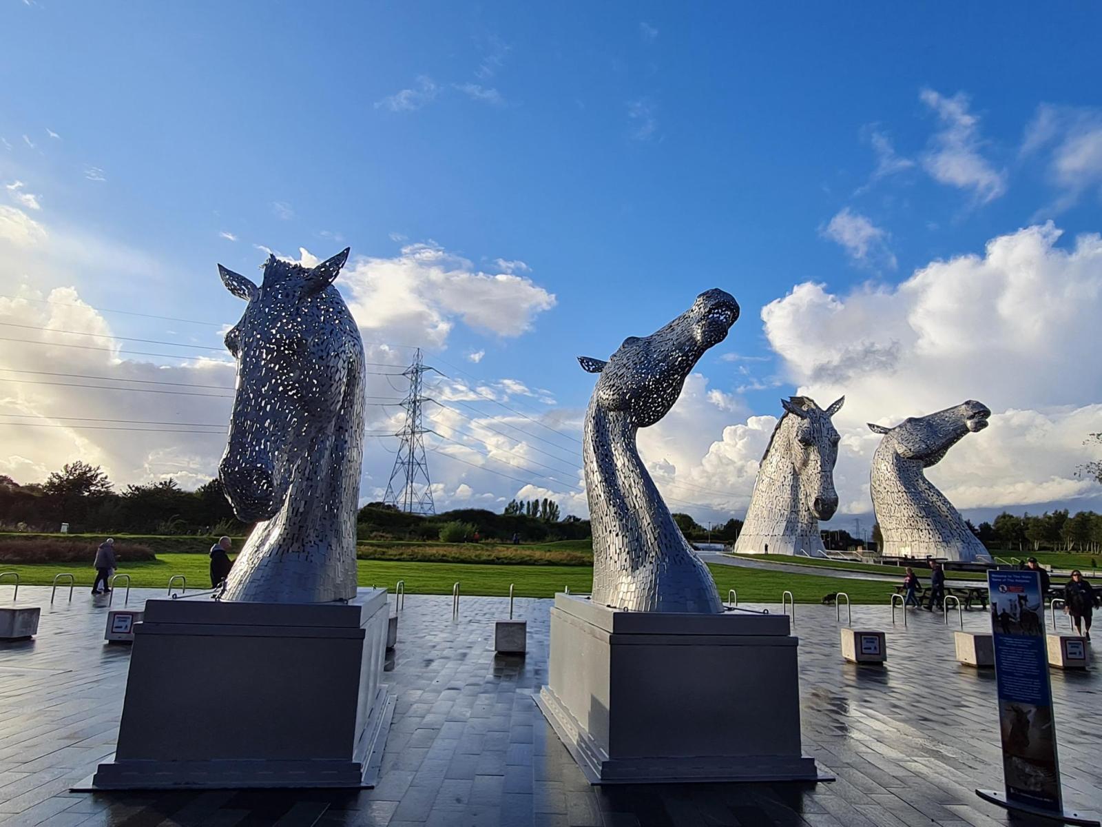 Na zpáteční cestě jsme se nemohli nezastavit a neobdivovat úžasné Kelpies – mýtické koňské hlavy z nerez oceli, opředené nesčetnými bájemi a pověstmi.