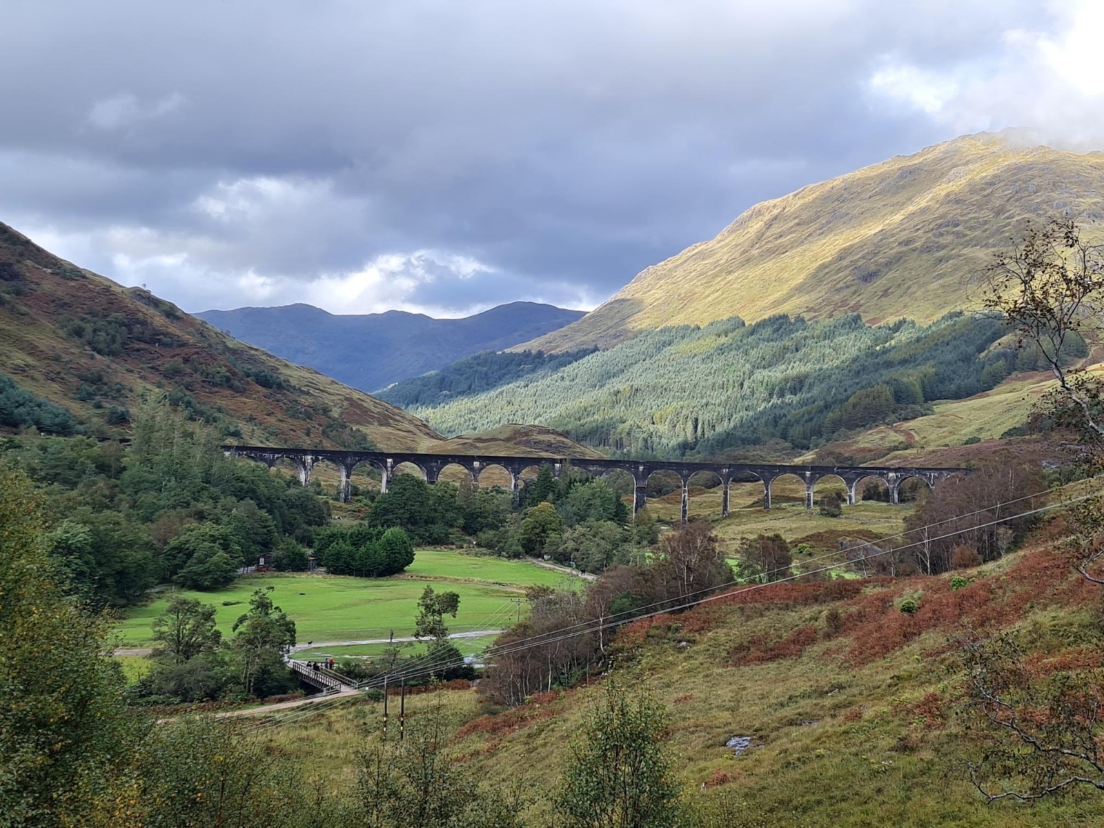 Poté jsme se vydali po stopách Harryho Pottera. Počkali jsme si u Glenfinnan Viaduct na projíždějící vlak do Bradavic, jestli nám zamává Harry, Hermiona nebo Ron.